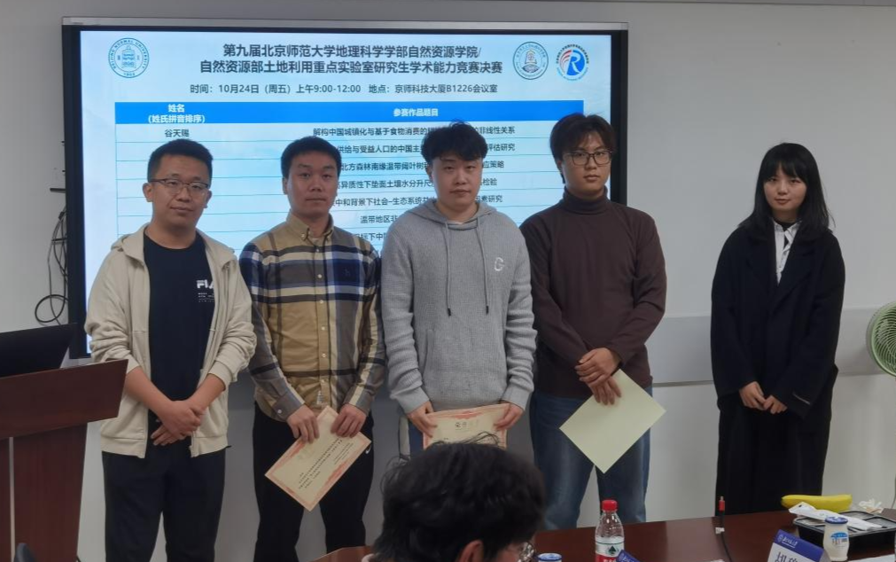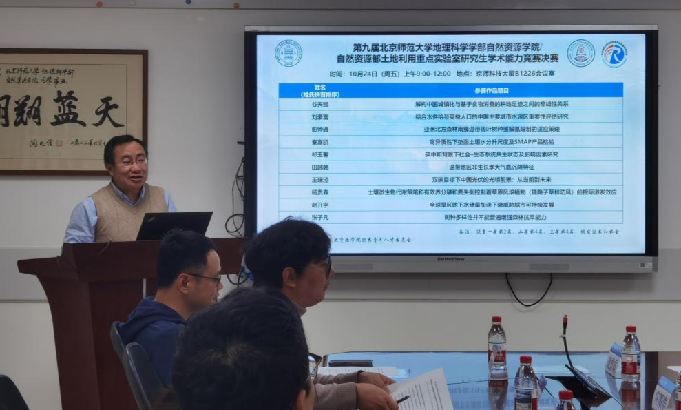 2025年10月24日,北京师范大学地理科学学部自然资源学院与自然资源部土地利用重点实验室联合举办的第九届研究生学术能力竞赛决赛在北京师范大学京师科技大厦B座1226会议室顺利举行。本次竞赛旨在为研究生提供展示学术成果、交流学术思想的平台,激发学术创新活力,培养科研综合能力,吸引了多个年级硕士、博士研究生积极参与。经过初赛的激烈角逐,最终有10名研究生脱颖而出,进入决赛阶段。